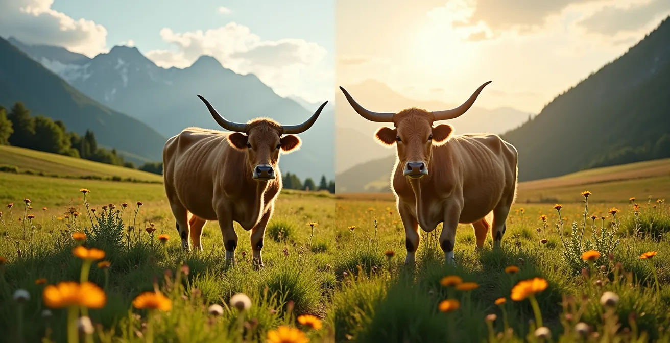 Im Vergleich dazu sind die EU-Bio-Vorgaben weniger streng. So reichen beispielsweise 95% Bio-Anteil im Futter aus. Auch die Vorschriften für den Auslauf sind weniger detailliert. Ein besonders kontroverses Thema ist die Enthornung von Kühen. Während sie bei Demeter generell verboten ist, ist sie bei EU-Bio mit Begründung erlaubt. Bio Suisse nimmt eine Mittelposition ein und erlaubt den Eingriff nur unter strengen Auflagen und fördert aktiv die Zucht von horntragenden Tieren.